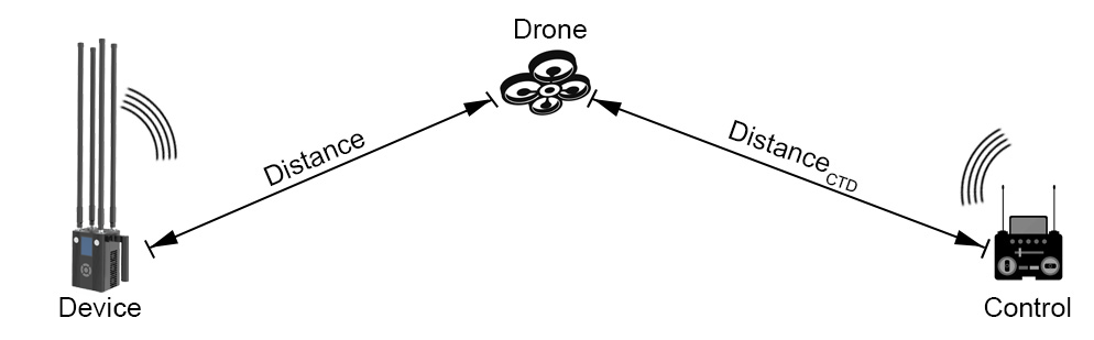 注意:使用时,请将设备瞄准无人机发射信号并避免障碍物。