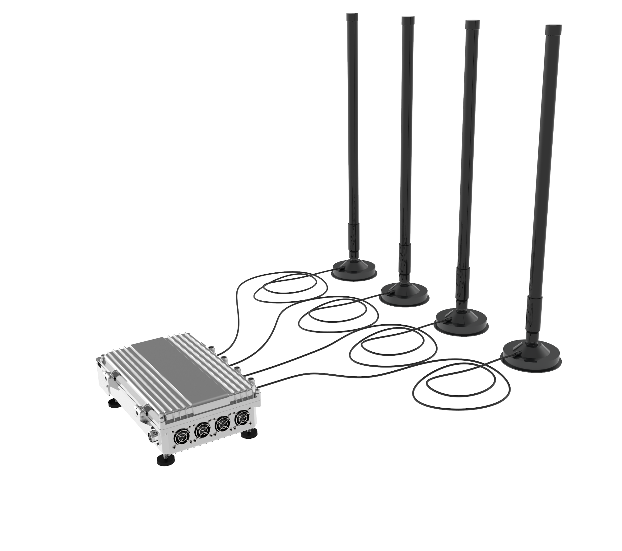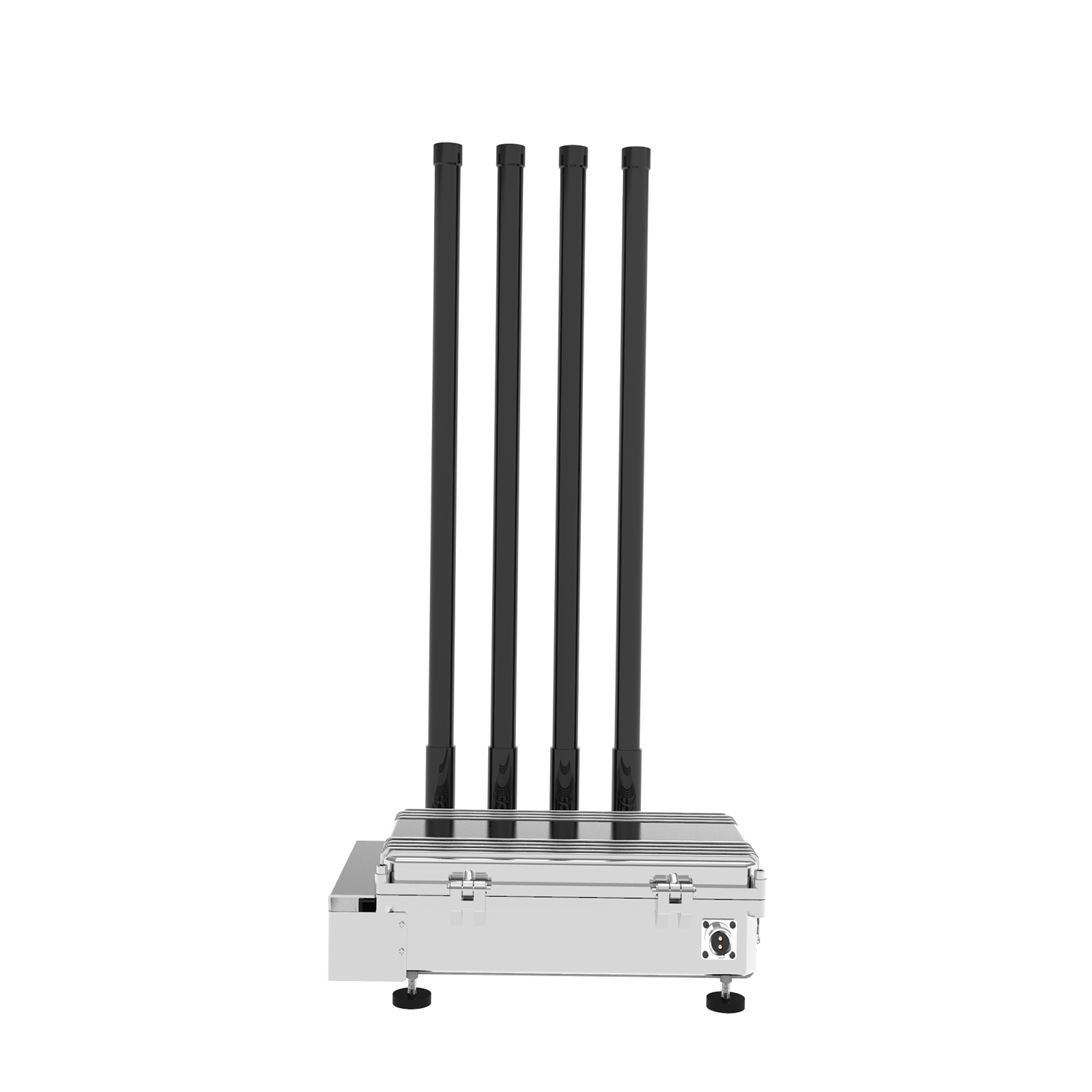 V04-4D 系列是一款车载固定干扰装置,它的底部安装有四块磁铁固定吸附脚。 V04-4D 支持800M/900M/2.4G/5.8G等四个干扰信号频段。信号输出功率为50W 。铝壳外壳两侧配有散热风扇,散热效果良好。可安装在车辆车顶,实现移动范围内的低空无人机干扰任务。