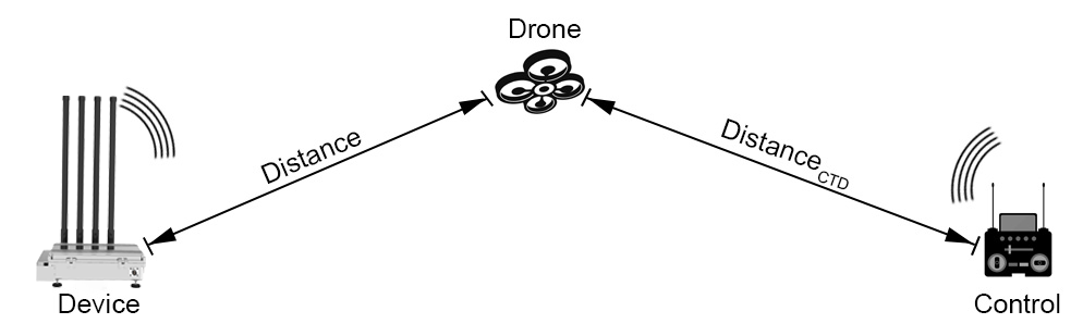 距离CTD =控制器到无人机的距离