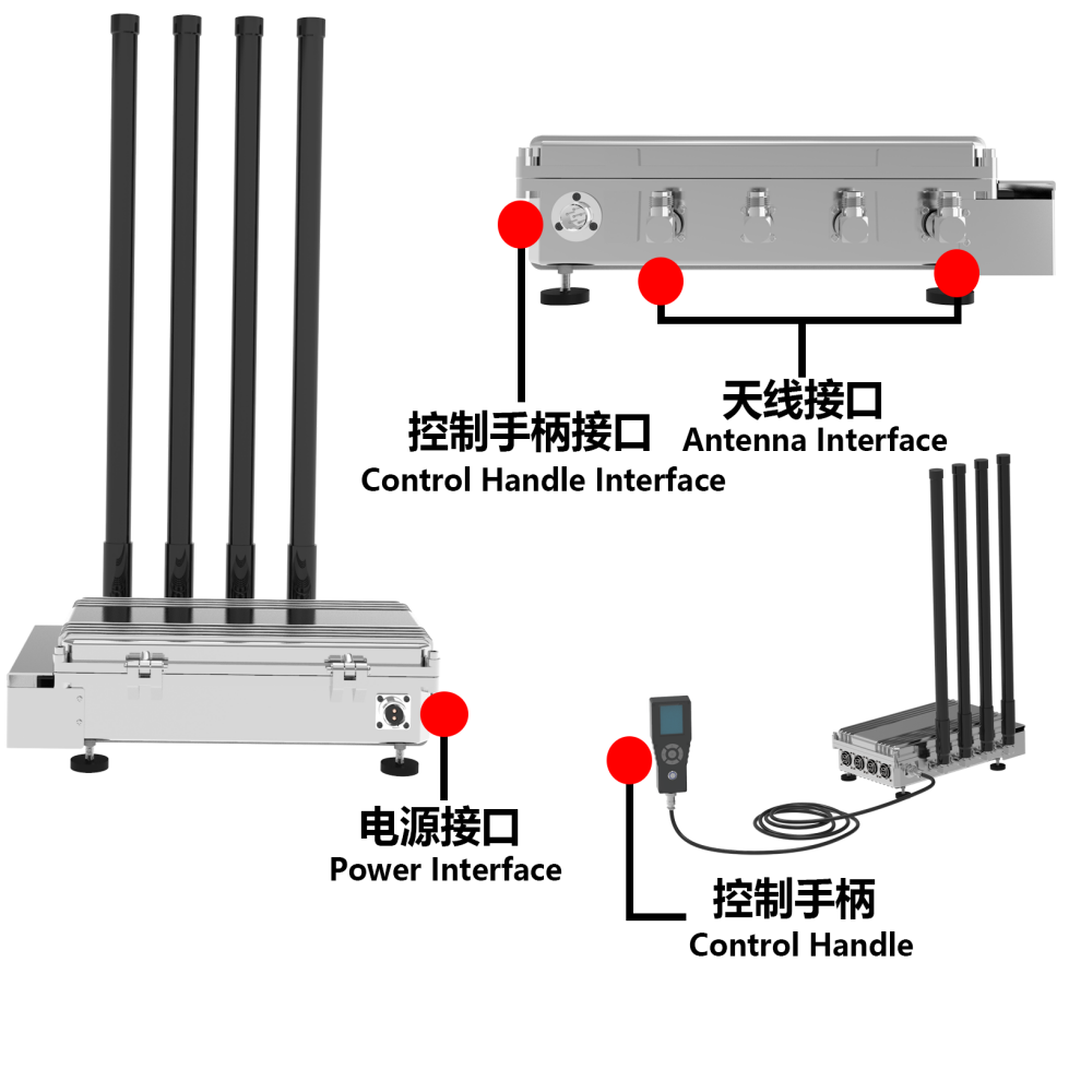 1。采用新款的数字干扰模块,更稳定的输出功率,更好的干扰效果。